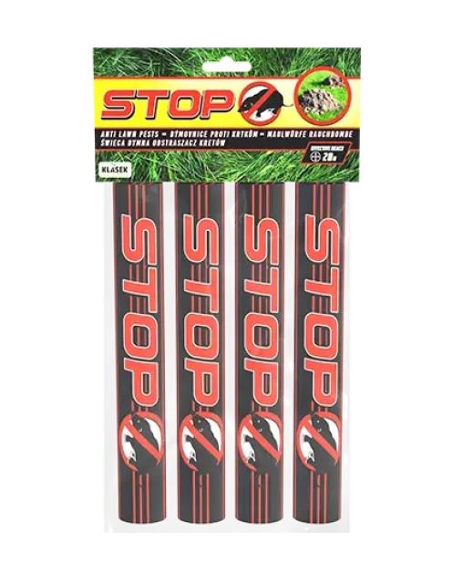 Οι βόμβες καπνού κατά των τυφλοπόντικων παράγουν πυκνό καπνό σε συνδυασμό με έντονη μυρωδιά, ο οποίος έχει σχεδιαστεί για να διώχνει τους τυφλοπόντικες από τα λαγούμια και να προστατεύει τον κήπο σας. Η χρήση είναι απλή: ανάψτε την, τοποθετήστε την στο διάδρομο και αφήστε τον καπνό να δράσει. Υπάρχουν 4 τεμάχια στη συσκευασία, ώστε να είναι δυνατή η αντιμετώπιση πολλών σημείων ταυτόχρονα. Το αποτέλεσμα διαρκεί 180 δευτερόλεπτα.