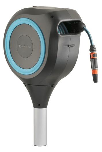 Άρδευση που είναι πάντα έτοιμη για δράση: το κουτί σωλήνων κήπου RollUp S της GARDENA δεν είναι ένα συνηθισμένο κουτί αποθήκευσης σωλήνων. Θα ενθουσιαστείτε από το πόσο εύκολο είναι το πότισμα του κήπου σας με αυτό το καλά κατασκευασμένο κουτί λάστιχου. Το πότισμα του μικρού σας κήπου είναι εύκολο με μέγιστη ελευθερία κινήσεων. Το κουτί στέκεται πάνω σε μια ανθεκτική μεταλλική κορυφή, ώστε να μπορείτε να το εγκαταστήσετε οπουδήποτε στον κήπο σας χωρίς να καταστρέψετε τον τοίχο. Η ακίδα γείωσης βιδώνεται στο έδαφος με μια ράβδο στερέωσης και είναι επομένως εξαιρετικά σταθερή. Για να το χρησιμοποιήσετε, απλώς τραβήξτε το λάστιχο κήπου σε απόσταση έως 15 μέτρα και μπορείτε να αρχίσετε αμέσως το πότισμα. Τα ενσωματωμένα σημεία ασφάλισης σε μικρές αποστάσεις εξασφαλίζουν εύκολο χειρισμό και σταθεροποιούν αυτόματα το λάστιχο στο επιθυμητό μήκος εξαγωγής. Χάρη στον μοντέρνο σχεδιασμό, το κουτί λάστιχου μπορεί να περιστραφεί κατά 360° για να φτάσει σε όλες τις γωνίες του κήπου σας. Κατά το πότισμα, το κουτί λάστιχου ακολουθεί τις κινήσεις σας και έτσι εμποδίζει το λάστιχο να στραβώσει ή να μπερδευτεί. Επιπλέον, αυτό το κουτί λάστιχου κήπου σας απαλλάσσει από την ταλαιπωρία να σέρνετε το λάστιχο στον κήπο, να σκύβετε και να βρέχετε και να λερώνετε τα χέρια σας όταν το τυλίγετε: ένα σύντομο τράβηγμα του ξετυλιγμένου σωλήνα ενεργοποιεί το ενσωματωμένο ελατήριο, το οποίο τυλίγει τον σωλήνα πίσω στο κουτί πλήρως αυτόματα και αξιόπιστα. Για να αποφύγετε το μπλοκάρισμα ή το στρίψιμο του σωλήνα, το ενσωματωμένο καρούλι-οδηγός διατηρεί τον σωλήνα κήπου στην πορεία του και η τεχνολογία RollControl εξασφαλίζει ασφαλές και ελεγχόμενο τύλιγμα. Το κιβώτιο λάστιχου προσαρμόζεται στο ύψος των ρομποτικών χλοοκοπτικών μηχανών GARDENA, ώστε το γκαζόν γύρω από το κιβώτιο λάστιχου να διατηρείται και να κουρεύεται πάντα. Το υψηλής ποιότητας υλικό είναι ανθεκτικό στην υπεριώδη ακτινοβολία και τον παγετό, το κουτί μπορεί να παραμείνει στον κήπο όλο το χρόνο και σας εγγυάται μεγάλη διάρκεια ζωής και χρήση χωρίς συντήρηση. Το κουτί είναι ιδιαίτερα συμπαγές και κομψά σχεδιασμένο, ώστε να μπορεί να ενσωματωθεί εύκολα σε κάθε κήπο. Το κουτί λάστιχου κήπου παρέχεται με έναν εύκαμπτο σωλήνα σύνδεσης, όλα τα απαραίτητα εξαρτήματα, αυθεντικά στοιχεία του συστήματος GARDENA και έναν ψεκαστήρα με δύο διαφορετικά σχέδια ψεκασμού.
