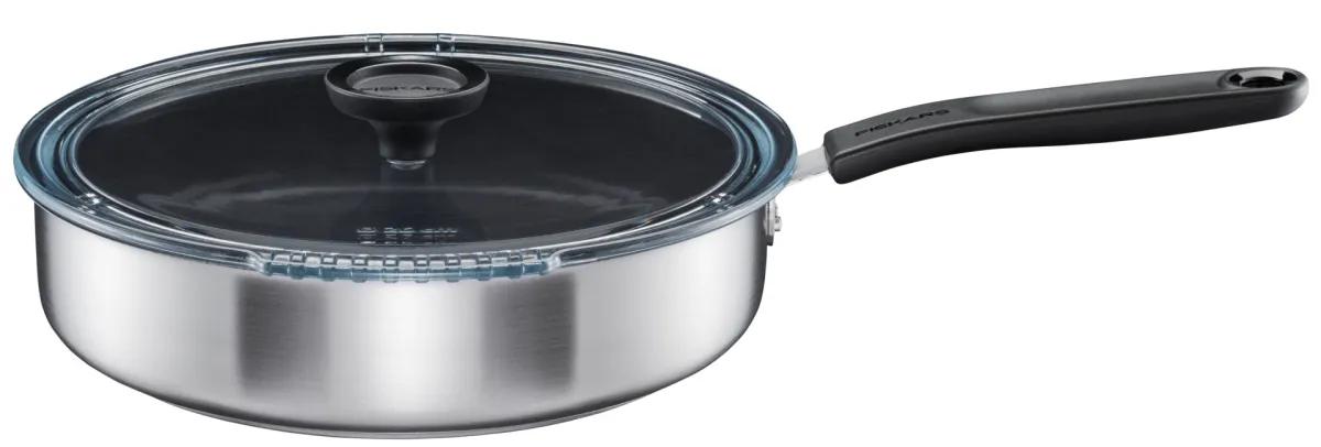 Panvica Fiskars Functional Form s pokrievkou 26 cm je ideálna pre každodenné varenie, má ploché dno a vyššie boky, ktoré sú ideálne na vyprážanie, dusenie a prípravu pokrmov na jednej panvici