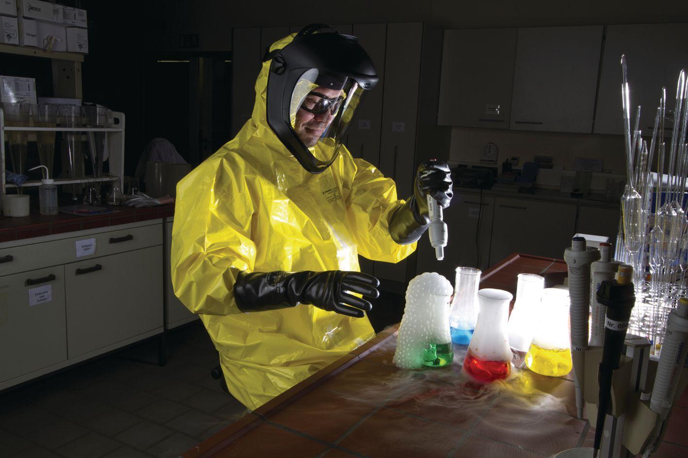 - Χημικά εξαιρετικά ανθεκτικά γάντια βουτυλίου σε σκόνη, κατάλληλα για επαφή με εξαιρετικά επικίνδυνα χημικά.