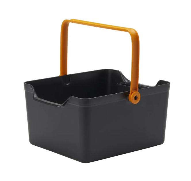 Κουτί εργαλείων Fiskars για εύκολη αποθήκευση των εργαλείων κήπου και μεταφορά τους από τον εσωτερικό χώρο στον εξωτερικό. Το σώμα είναι κατασκευασμένο από ανθεκτικό πλαστικό με 20% ανακυκλωμένο πλαστικό. Το ευρύχωρο κουτί περιλαμβάνει επίσης ένα αφαιρούμενο καλάθι με τρύπες που κρέμεται στα τοιχώματα του κουτιού. Το καλάθι είναι ιδανικό για την αποθήκευση ψαλιδιών, κλαδευτηρίων και άλλων μικρών εργαλείων. Η λαβή ασφαλίζεται στην επάνω θέση όταν μεταφέρετε με το ένα χέρι ή χρησιμοποιήστε τις πλευρικές λαβές όταν μεταφέρετε και με τα δύο χέρια. Το κουτί έχει μέγεθος για αποθήκευση σε τυπικά ντουλάπια και ντουλάπες. Εάν αφήσετε το κουτί σε εξωτερικό χώρο, συνιστούμε να το τοποθετήσετε σε προστατευμένη θέση, μακριά από το άμεσο ηλιακό φως και τις καιρικές συνθήκες.