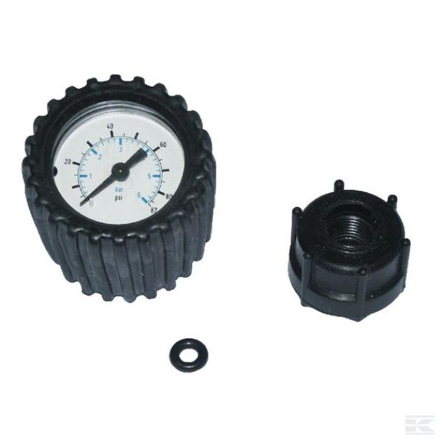Μανόμετρο έως 10 bar με συνδέσεις. για τον έλεγχο της πίεσης ψεκασμού. Μπορείτε να εφαρμόσετε με ακρίβεια το ψεκασμό με την επιθυμητή πίεση.