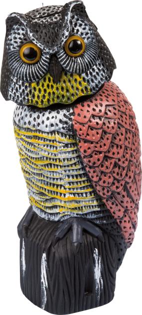 Ένα ρεαλιστικό μοντέλο κουκουβάγιας προστατεύει τον κήπο από τα πουλιά. Κατασκευασμένη από ανθεκτικό πλαστικό, είναι ταυτόχρονα λειτουργική και διακοσμητική, ιδανική για εξωτερική χρήση για ένα καθαρό και ασφαλές περιβάλλον.