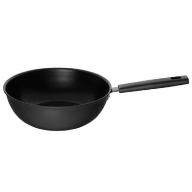 Αλουμινένιο γουόκ της Fiskars για δύσκολες δουλειές. Αντικολλητικές ιδιότητες, επιφάνεια Hardtec Superior, λαβή ασφαλείας από βακελίτη, παχύτερος πυθμένας εξοικονόμησης ενέργειας, μοντέρνος μαύρος σχεδιασμός.